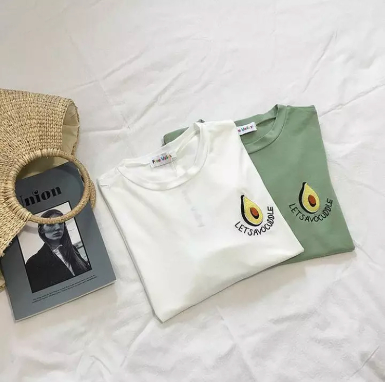 アボカド刺繍Tシャツ入荷しました。レディース、フリーサイズです。ワンポイントでシンプルですが、アボカドがなかなかの存在感。ホワイト、グリーンどちらも可愛いです。