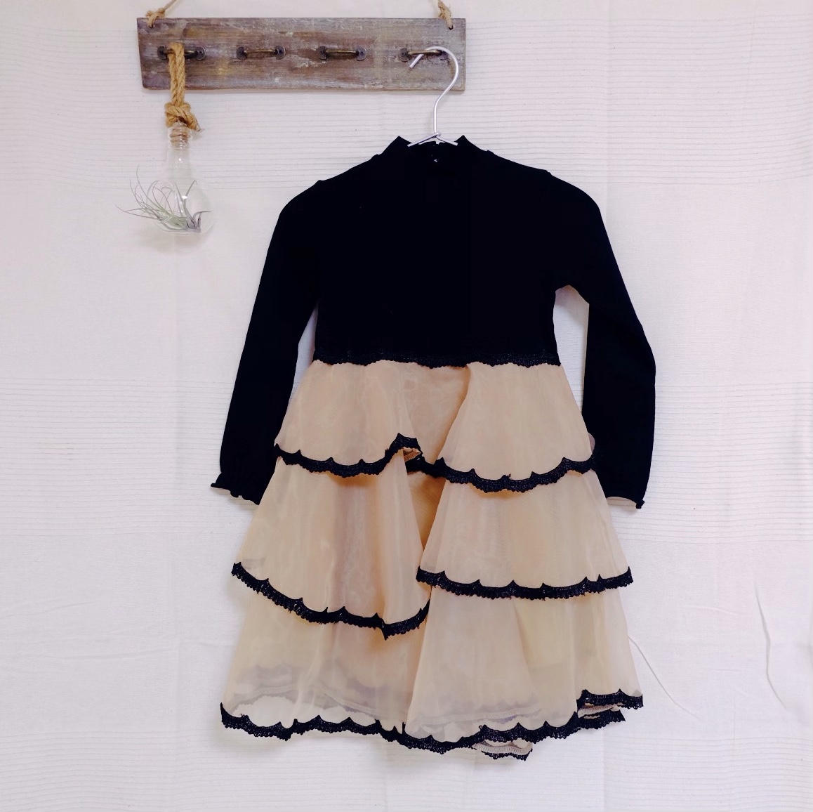 ふわふわなスカート♡シワになりにくいです( ¨̮ )黒のトップス部分はストレッチ素材なので動きやすいです。控えめピンクが上品で素敵なドレスです。サイズは90~150cm在庫がない場合お取り寄せ2週間程度でお届け可...